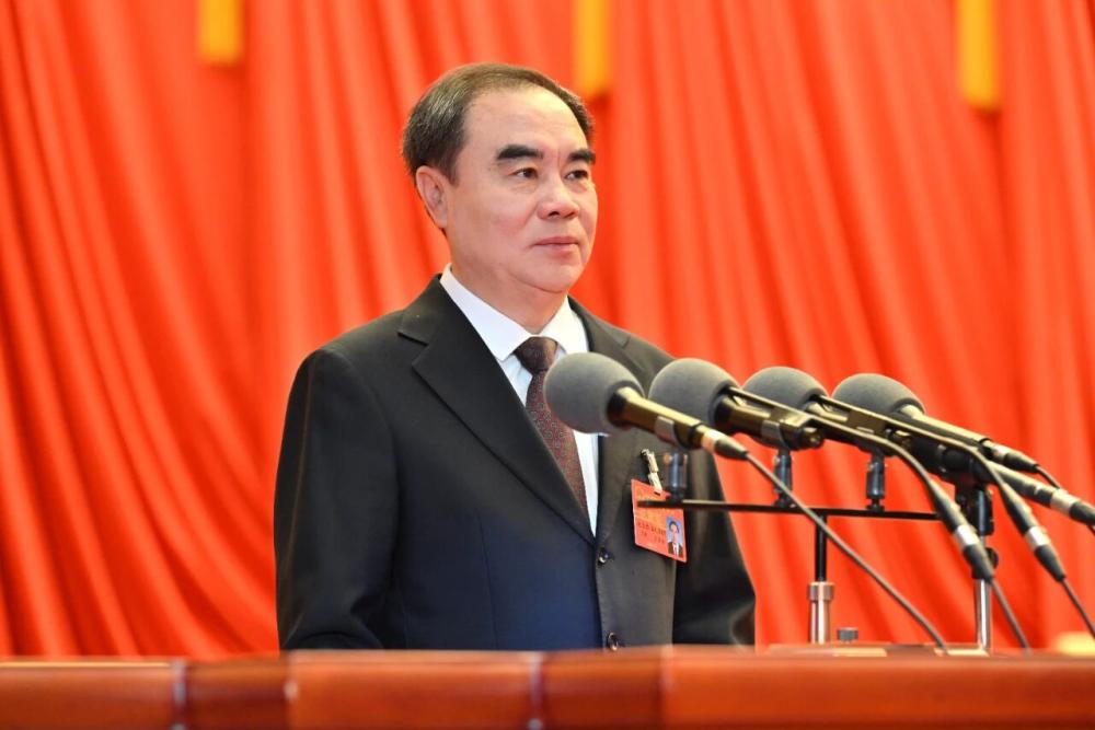 区人民法院院长谭劲松代表区人民法院向大会报告工作。