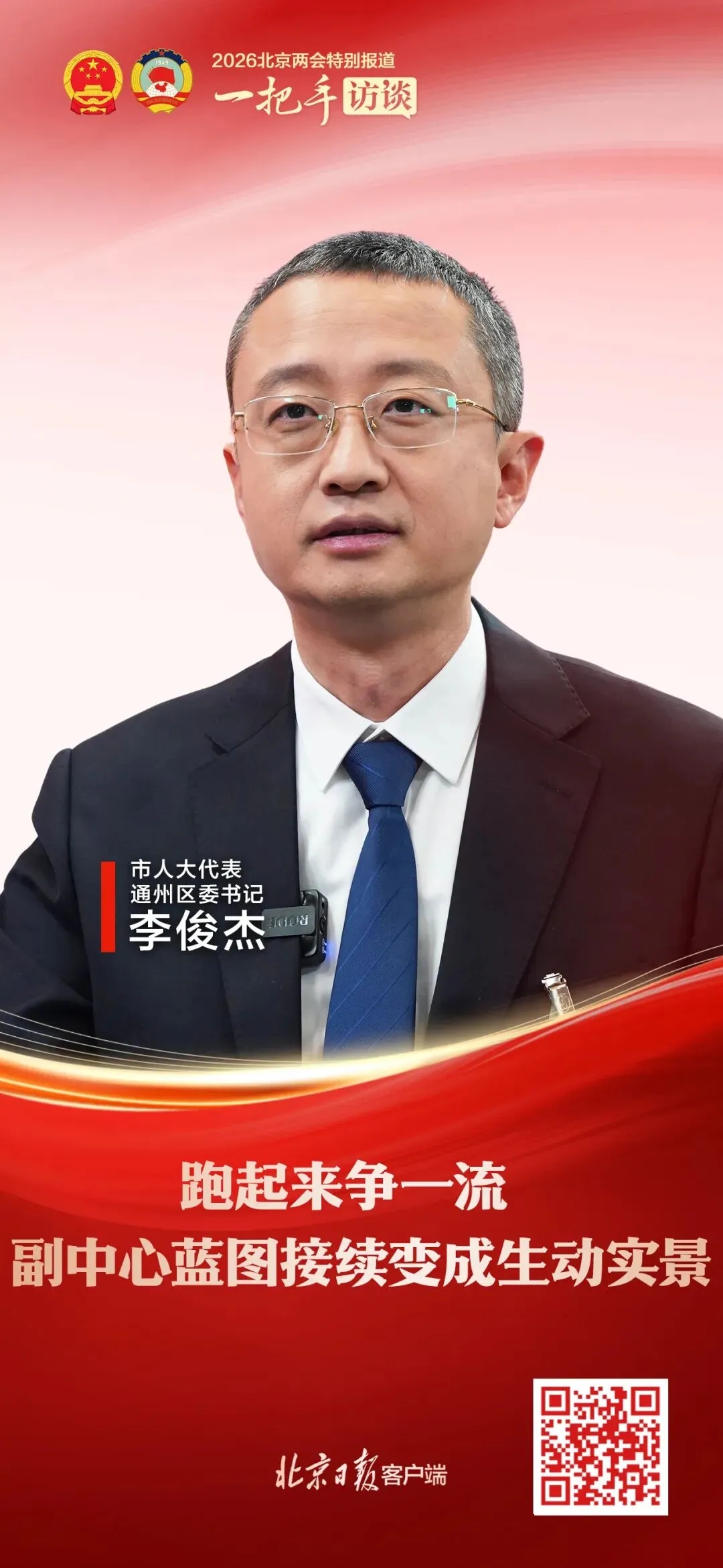 2026年北京市两会期间,市人大代表、通州区委书记李俊杰做客“一把手访谈”栏目,畅谈通州区“十五五”如何开局。